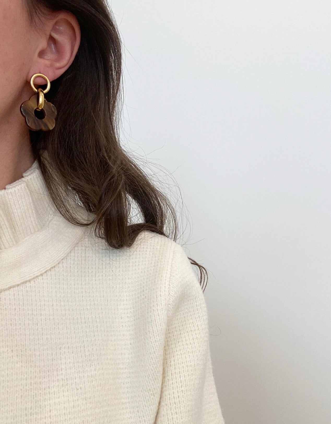 Créoles en acier doré inoxydable & fleur acétate marron glacé