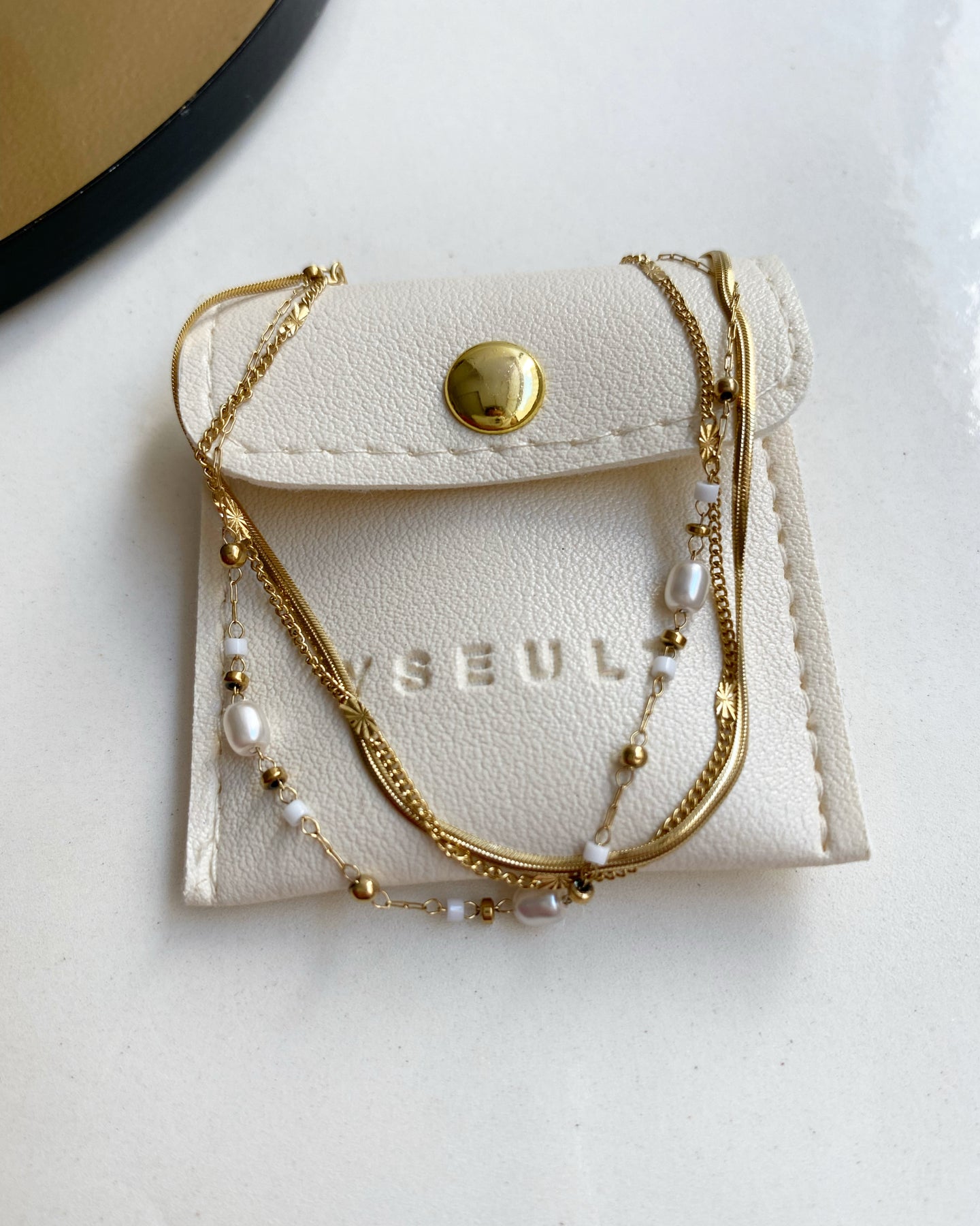 Triple bracelet en acier doré inoxydable & perles d'eau douce