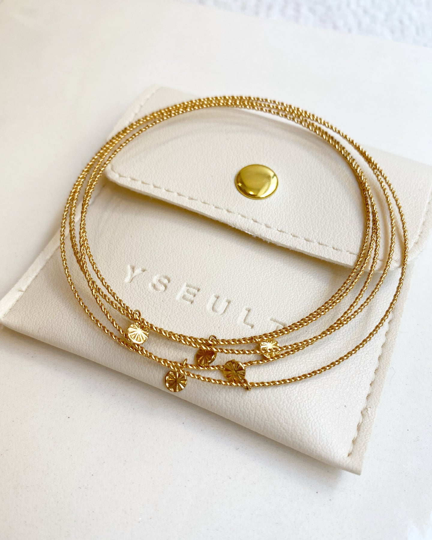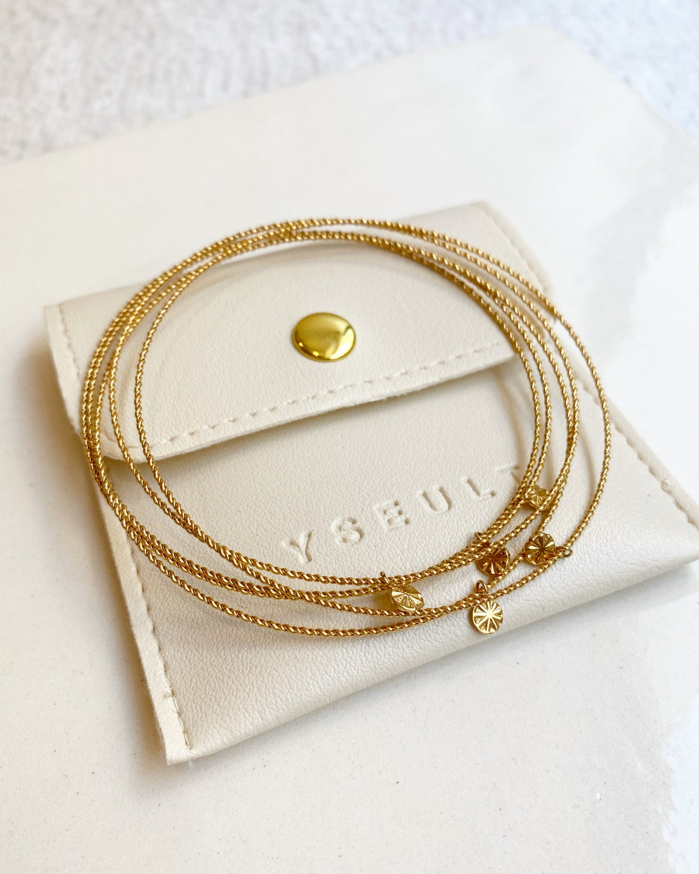 Lot de 5 joncs en acier doré inoxydable torsadé & médailles