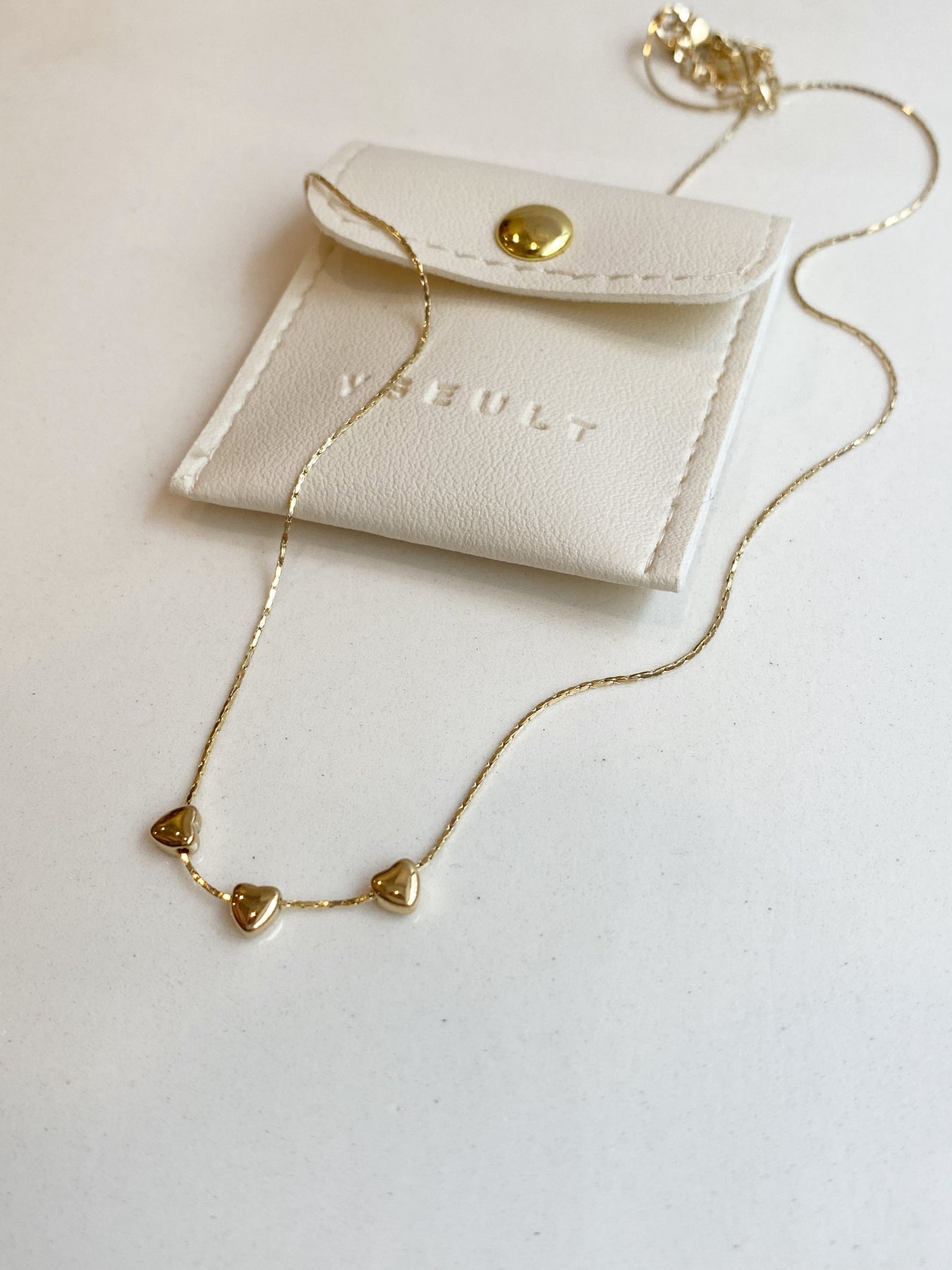 Collier en acier doré inoxydable & 3 petits coeurs non fixes