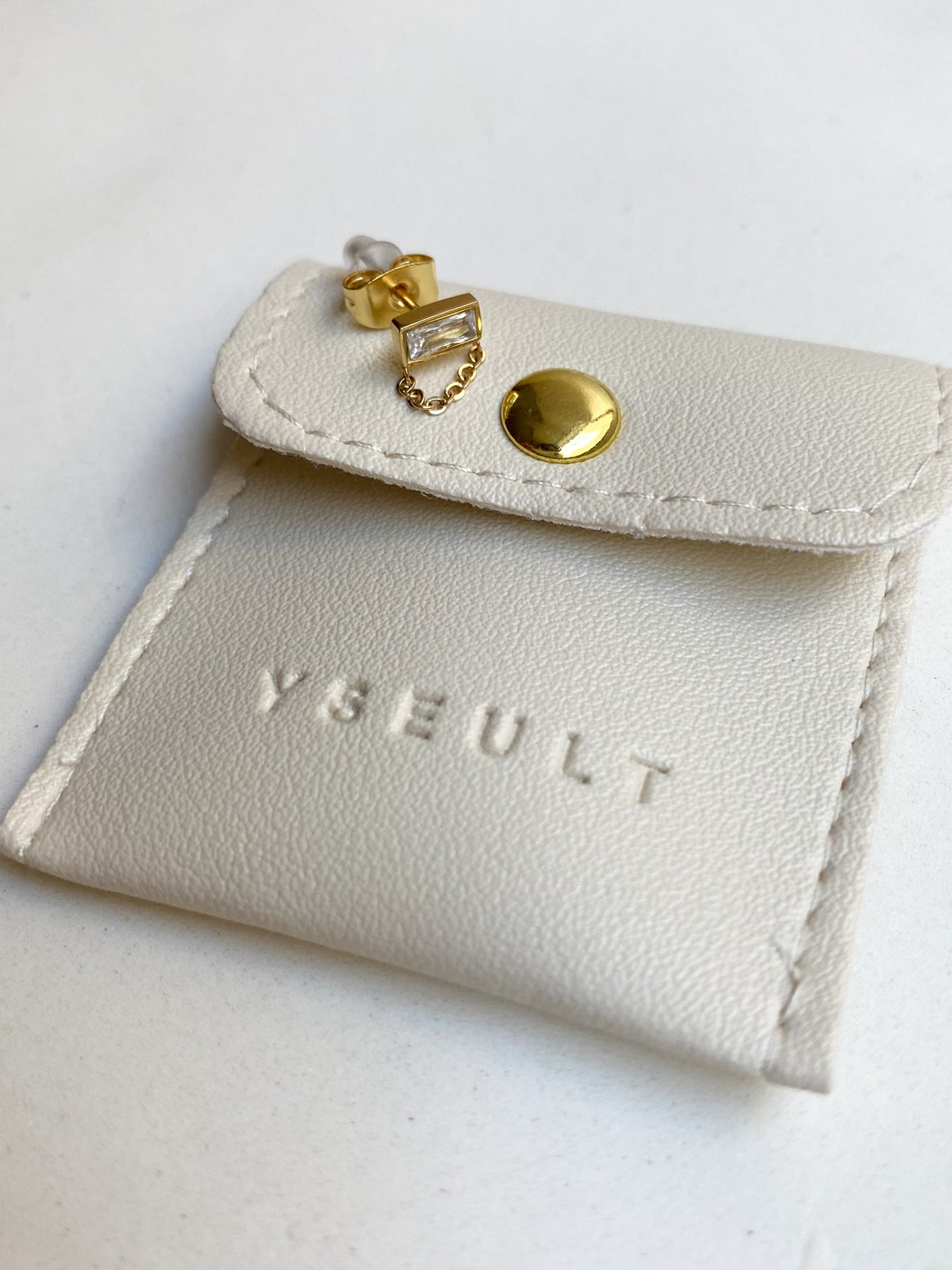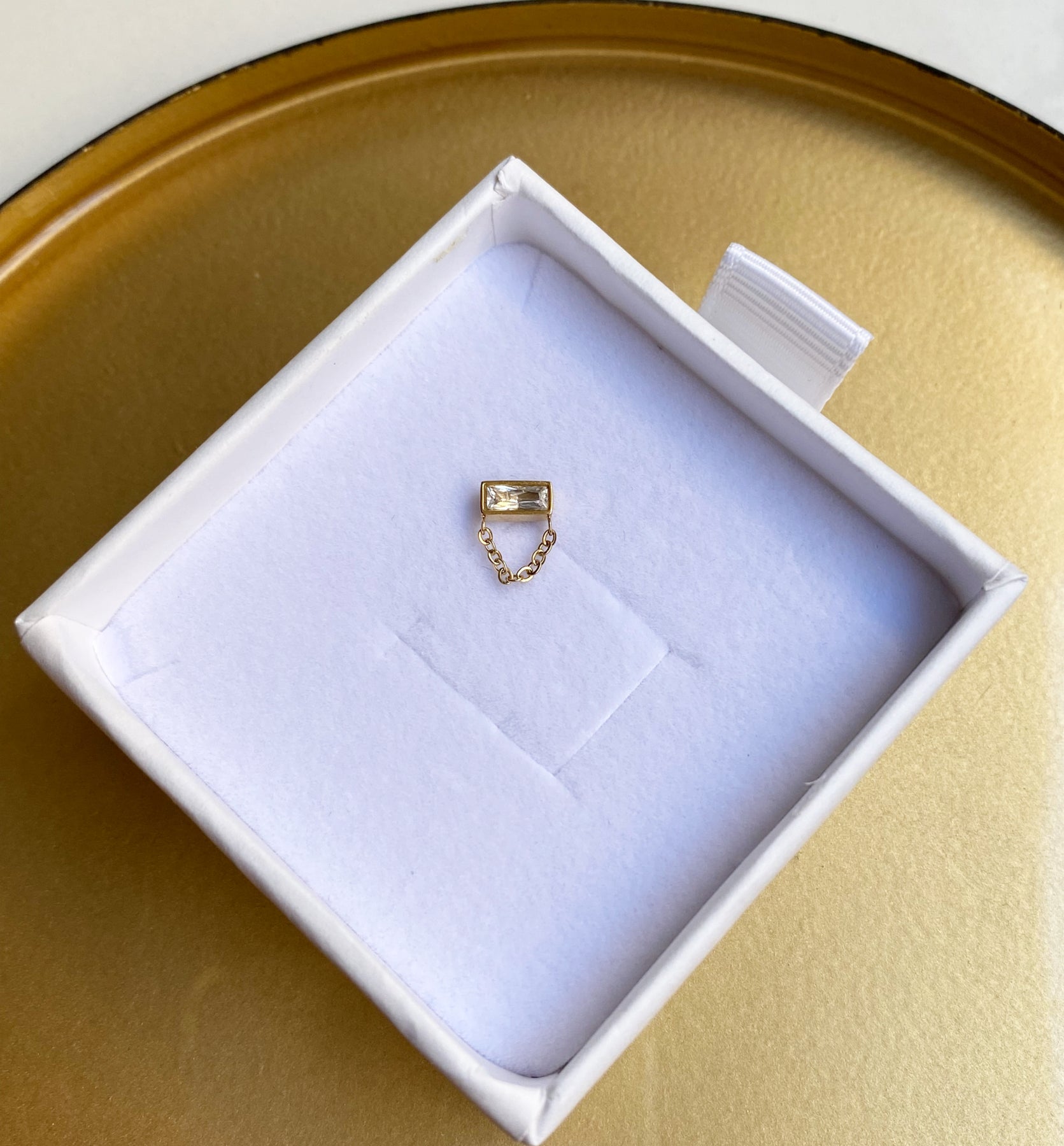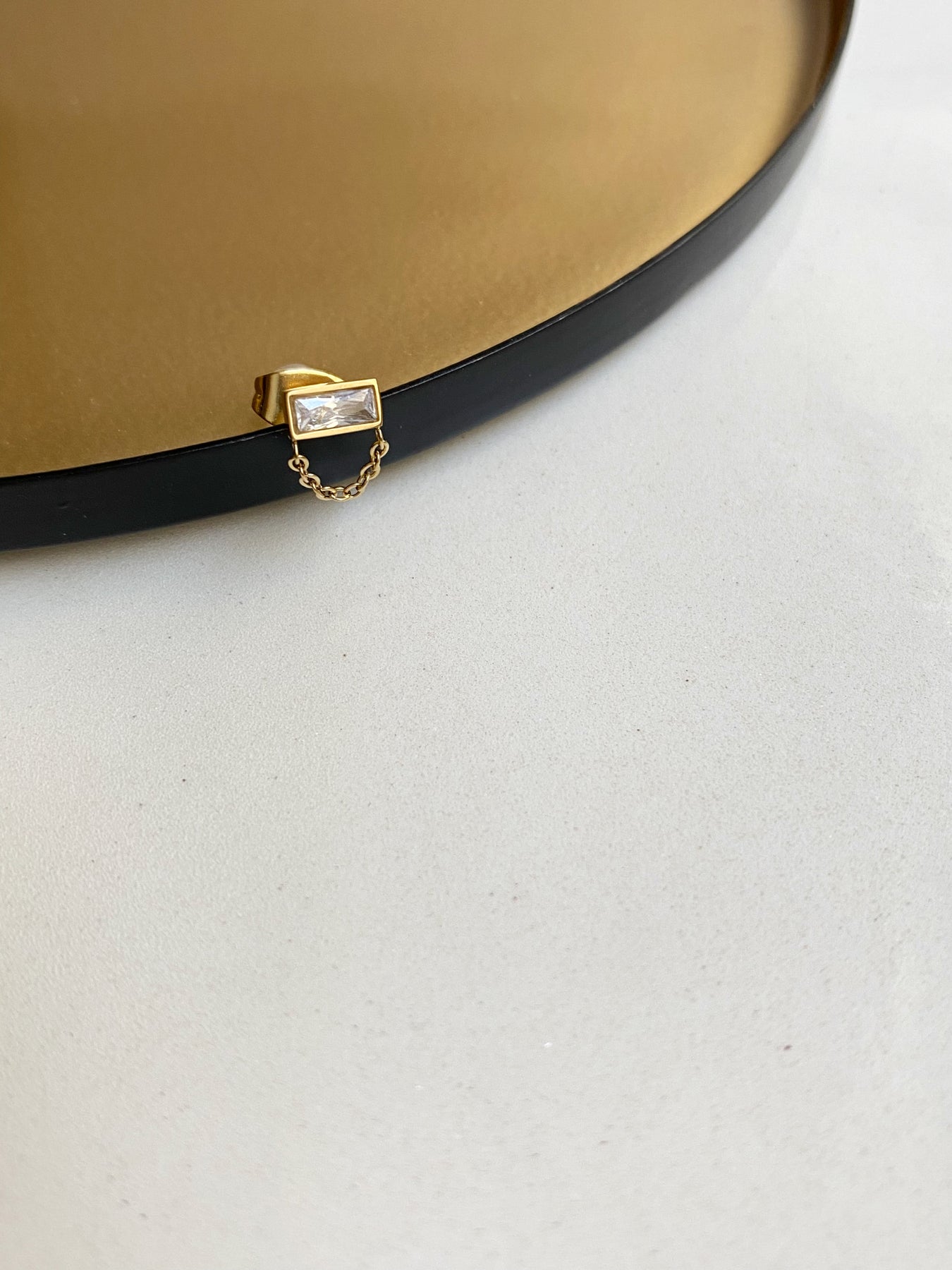 Boucle d'oreille en acier doré inoxydable vendue à l'unité composé d'un brillant en zircon et d'une chaînette