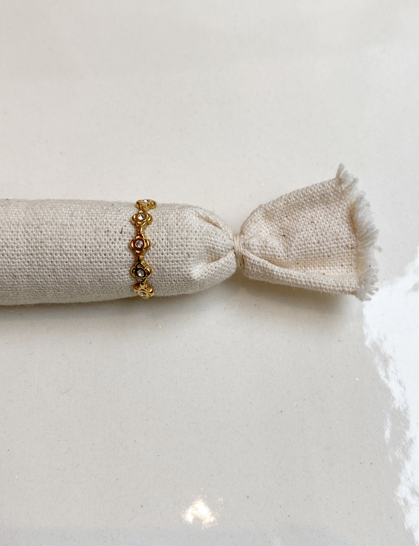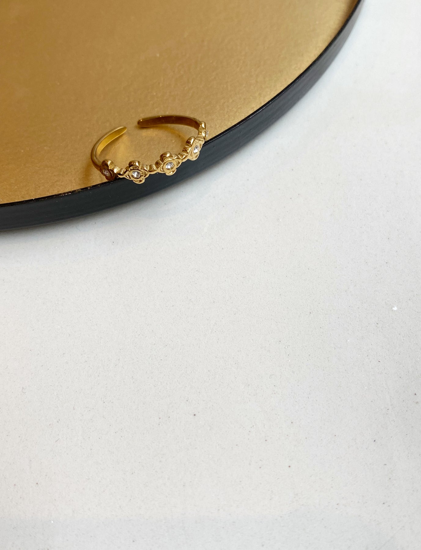 Fine bague en acier doré inoxydable & zircons