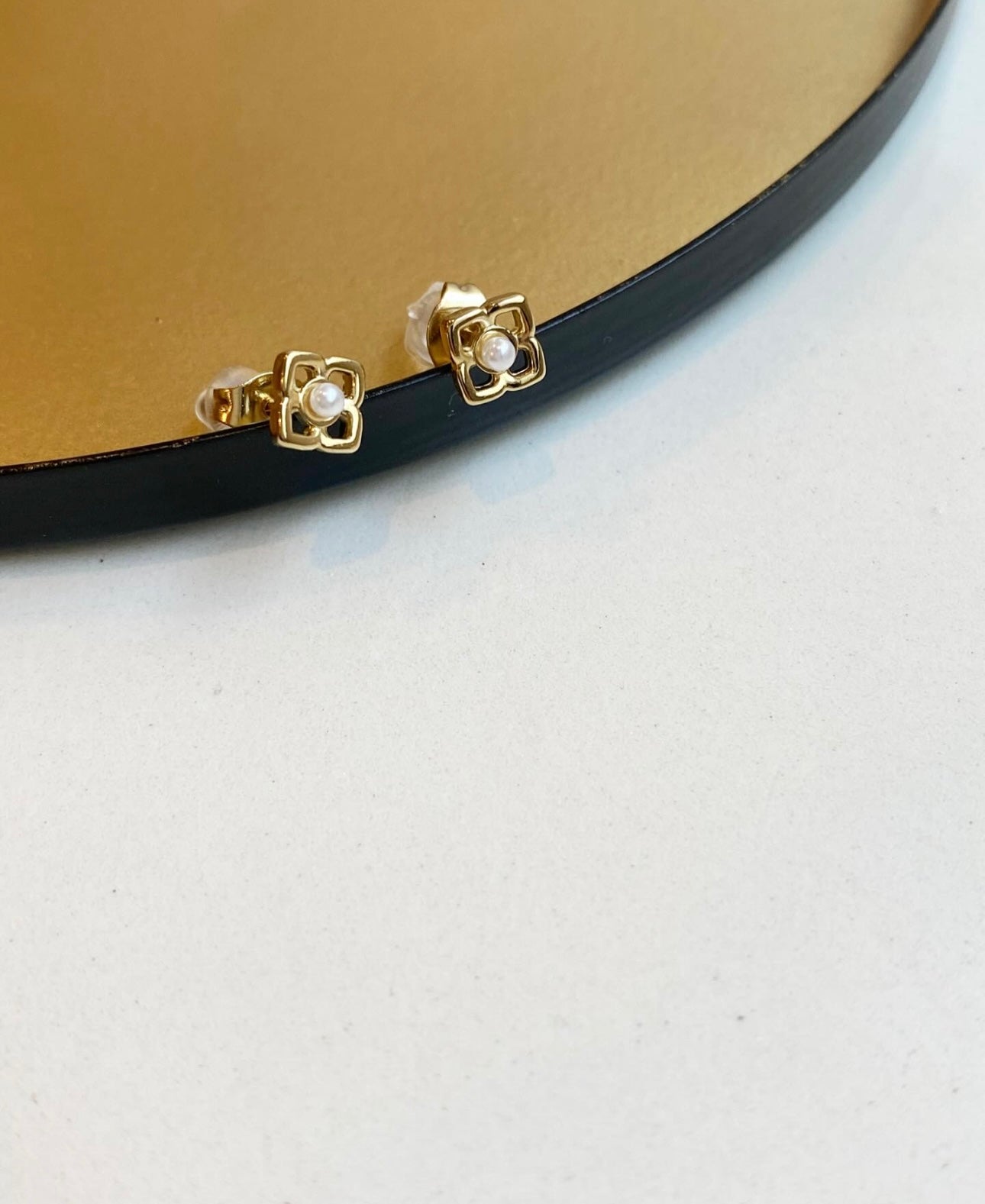 Boucles en acier doré inoxydable trèfle & mini perle d'eau douce